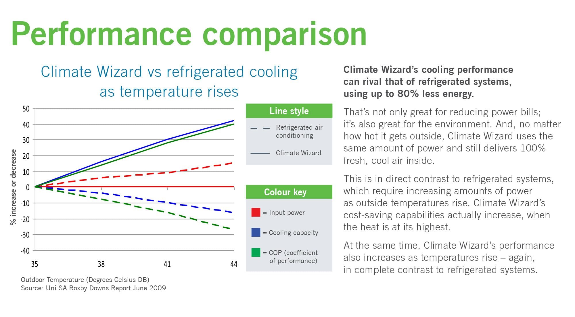 • Through evaporation and conduction, it gains both moisture and heat. The channels are continuously soaked with water. This moist, warm air is then exhausted outside of the building.