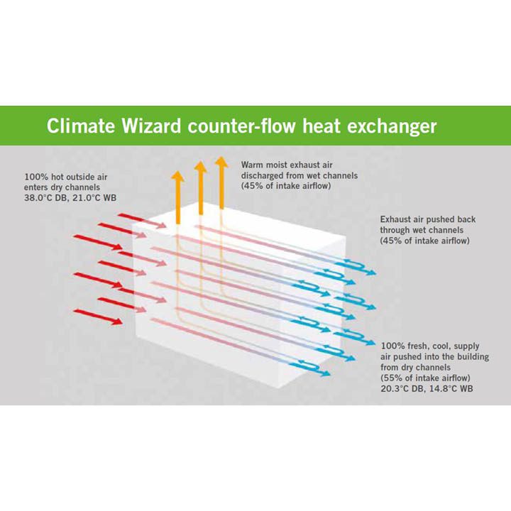Climate Wizard es una primicia mundial y la revolución innovadora del siglo en tecnología de refrigeración, que utiliza una nueva forma de enfriar para ofrecer niveles de refrigeración sin parangón a una fracción del coste del aire acondicionado refrigerado. Esta tecnología de eficacia probada se ha adoptado con éxito en todo el mundo.