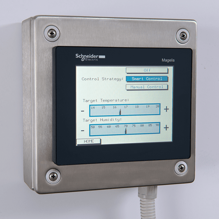 Un controlador inteligente se utiliza como eje central para controlar uno o varios refrigeradores Climate Wizard mediante la evaluación constante de las condiciones internas y externas. Estas condiciones se procesan a través de numerosos algoritmos predictivos para determinar los ajustes óptimos necesarios para alcanzar niveles específicos de temperatura y humedad con un consumo mínimo.