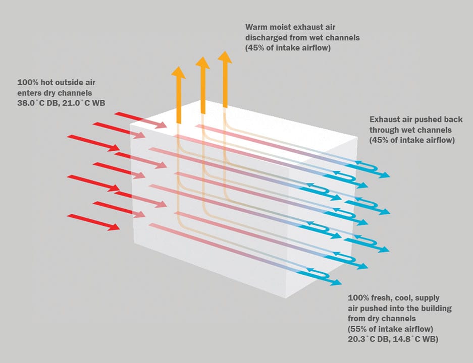 Climate Wizard indirect evaporative air conditioners use a hyper-efficient counter-flow heat exchanger to produce 100% fresh, cool, outside air, with no added moisture. The fresh cold air produced by Climate Wizard can be similar to that produced by refrigerated systems, with temperatures that approach the ambient dew-point temperature.